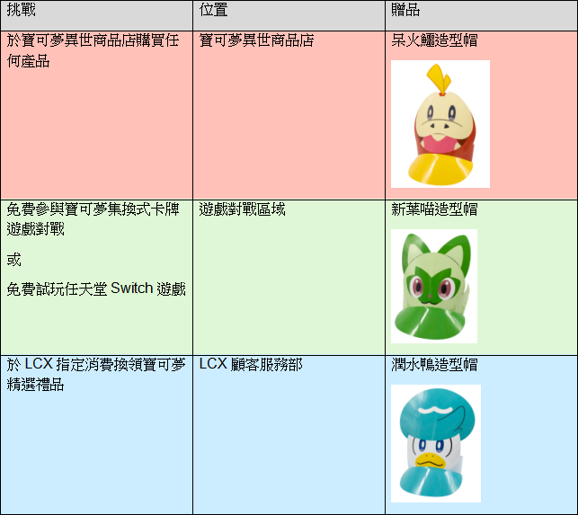 LCX有一連串任務派遣給各位訓練家!只要完成挑戰,就有機會獲得《寶可夢 朱/紫》初期三隻寶可夢造型帽一頂!