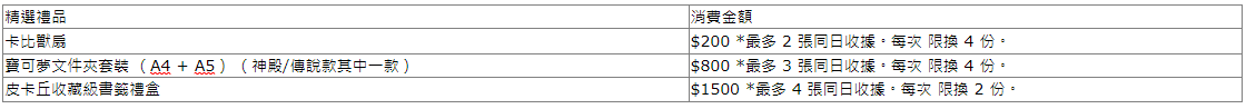 顧客於 LCX 任何商戶及寶可夢異世商品店消費滿指定金額,即可換領禮品一份,換完即止。