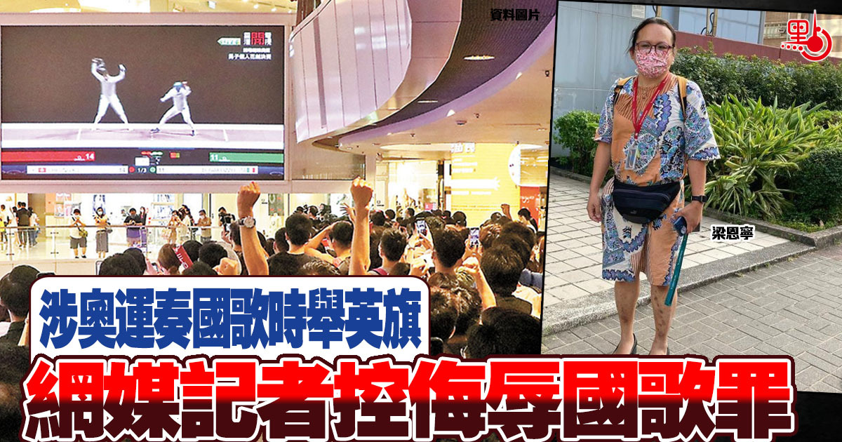 香港劍擊代表張家朗去年7月26日在東京奧運男子個人花劍賽勇奪金牌,當晚數百名市民在觀塘 APM商場看直播奧運頒獎儀式時,有反中亂港分子在進行領獎及奏國歌時趁機發出噓聲,警方調查後拘捕一名黃網媒男記者,涉嫌侮辱國歌,是首次有人因違反《國歌條例》被捕案件。他一年後被控一項侮辱國歌罪,昨在觀塘裁判法院提堂,被告暫毋須答辯,案件押後至9月9日再訊,以待辯方索取文件及提供法律意見。被告獲准以5000元保釋,期間不准離港、交出旅遊證件及每周到警署報到一次。