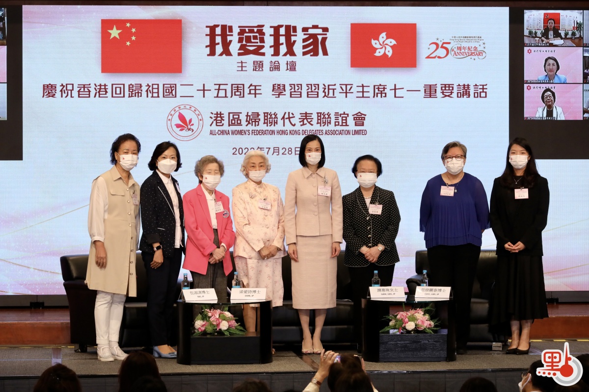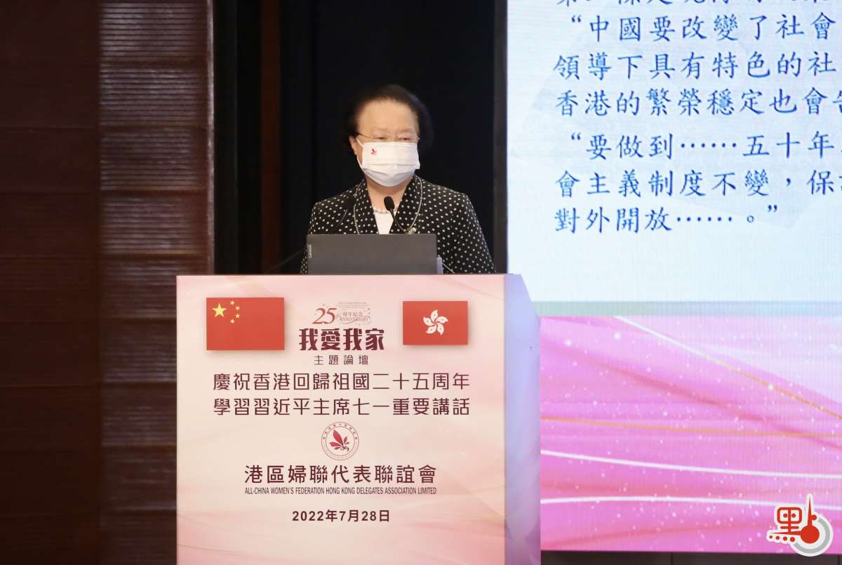 港區婦聯代表聯誼會今日(28日)舉辦「慶祝香港回歸祖國二十五周年 學習習近平主席七一重要講話暨『我愛我家』主題論壇」。香港特區行政長官李家超、中聯辦協調部副部長張強、港區婦聯代表聯誼會會長陳曼琪擔任主禮嘉賓並致辭,全國婦聯黨組書記、副主席、書記處第一書記黃曉薇向大會致勉辭視頻。香港立法會主席梁君彥、保安局局長鄧炳強等特區政府主要官員、議員和各界逾百位嘉賓出席活動。
