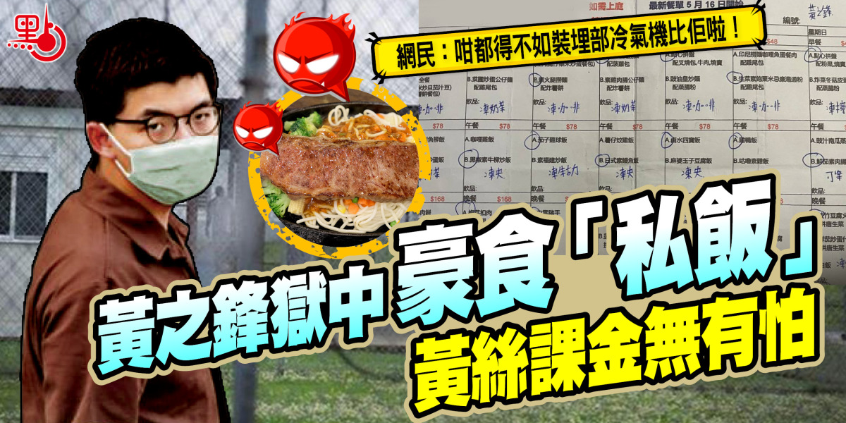 正喺赤柱監獄還柙嘅攬炒政棍黃之鋒,噚日喺fb專頁上載佢嘅獄中隨筆,提到雖然「食私飯」每月要數千元,絕不便宜,仲幾肉赤,但就話喺獄中進食外間嘅港式食物,係一點微弱嘅安慰喎。