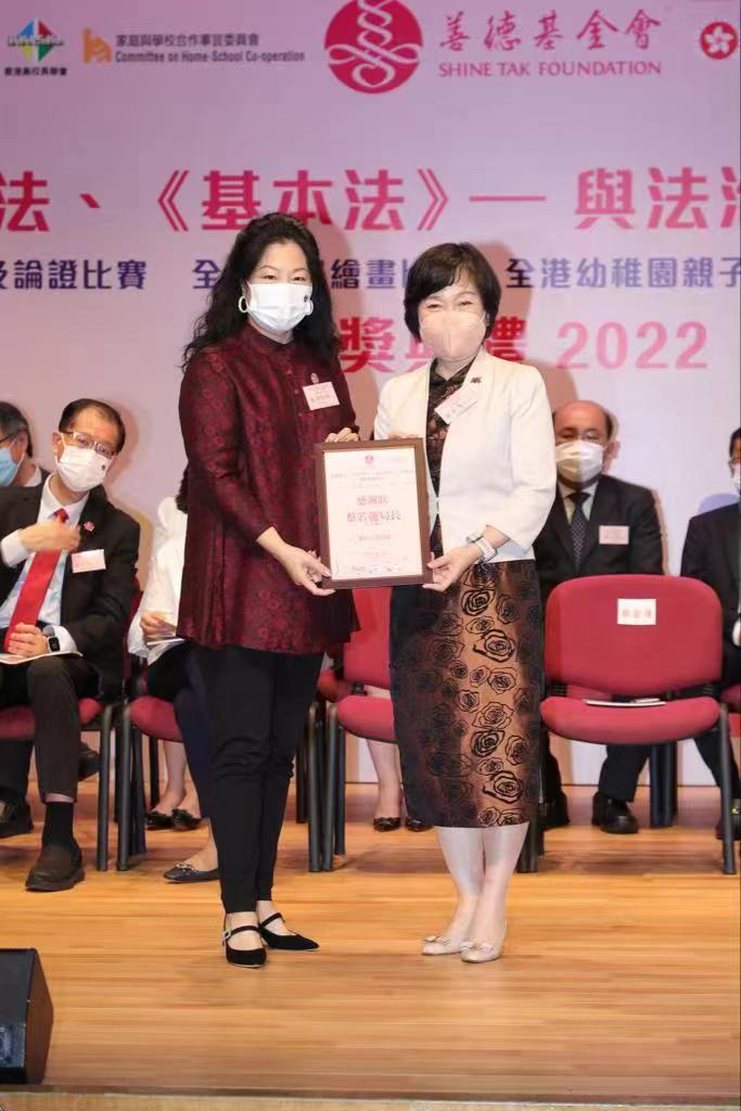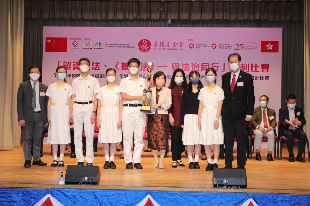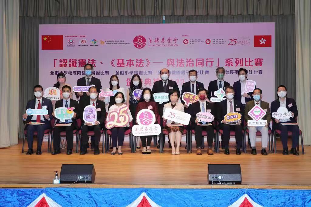 善德基金會的「認識憲法、《基本法》— 與法治同行」系列比賽今日(30日)舉行頒奬典禮。教育局局長蔡若蓮、民政及青年事務局麥美娟、政制及內地事務局副局長胡健民等人擔任頒奬嘉賓。