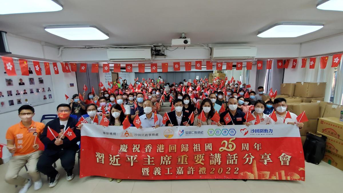 沙田民政事務處繼早前於7月8日、14日、17日、18日及26日舉行六場座談會後,昨日(7月31日)聯同火炭連線、愛助仁服務社、同行明天和沙田圍動力,在沙田鄉事委員會辦事處舉辦「習近平主席重要講話分享會」,邀請港區全國政協委員簡松年擔任主講嘉賓。中聯辦新界工作部處長廖銘華亦有發言。約100人出席座談會。