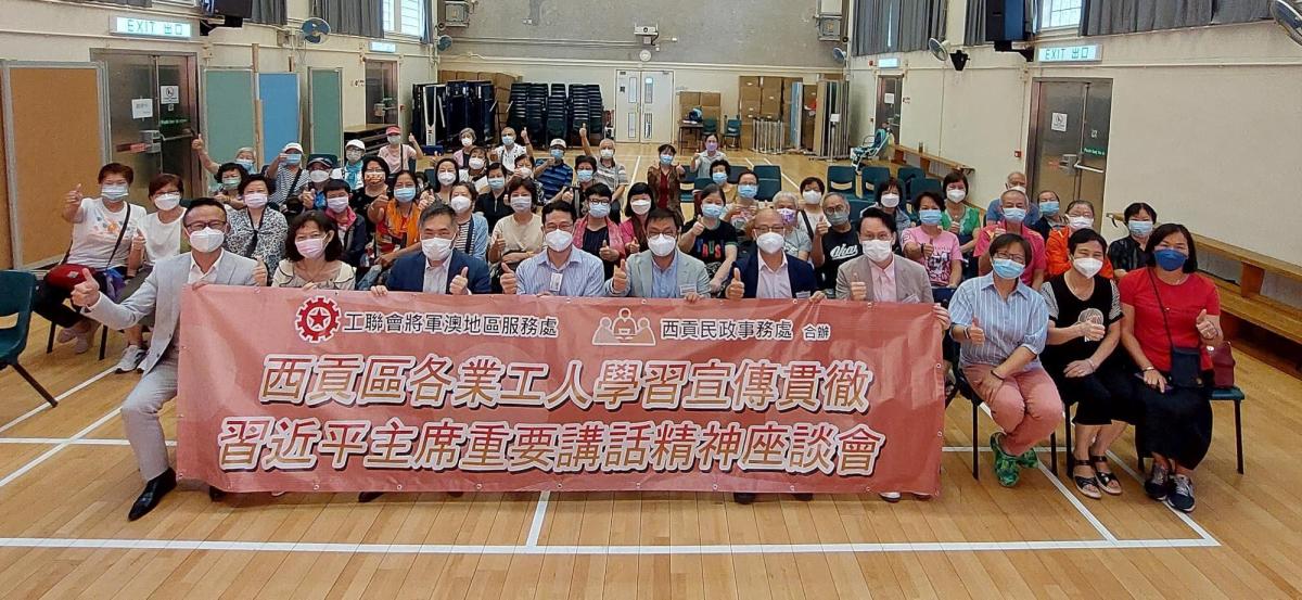 西貢民政事務處亦繼7月16日舉行座談會後,於7月30日與香港工會聯合會(工聯會)將軍澳地區服務處,在景林鄰里社區中心舉辦「西貢區各業工人學習宣傳貫徹習近平主席重要講話精神座談會」,邀請立法會議員梁子穎為主講嘉賓。西貢民政事務專員趙燕驊亦有發言。共約100名人士出席座談會,與會者包括工聯會的會員及西貢地區人士。