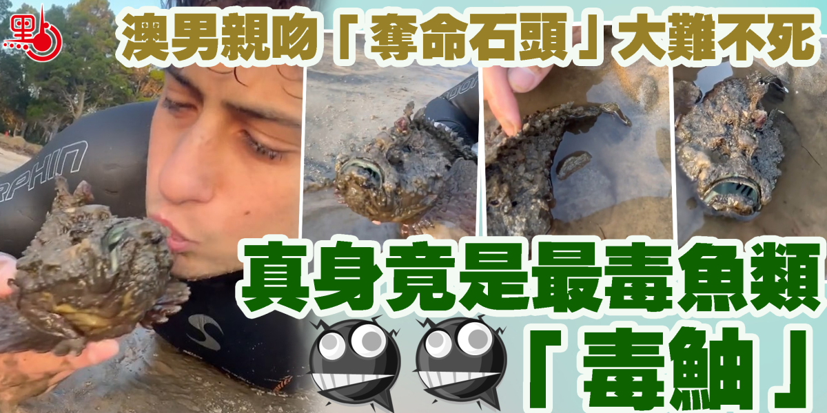 日前有名澳洲男子在海邊戲水時,發現一顆奇怪的石頭。好奇心驅使下伸手去撈這個石頭,只見這是條魚,便玩弄起來。此外,他還拍攝了TikTok影片詢問網民是否知道是什麼生物。