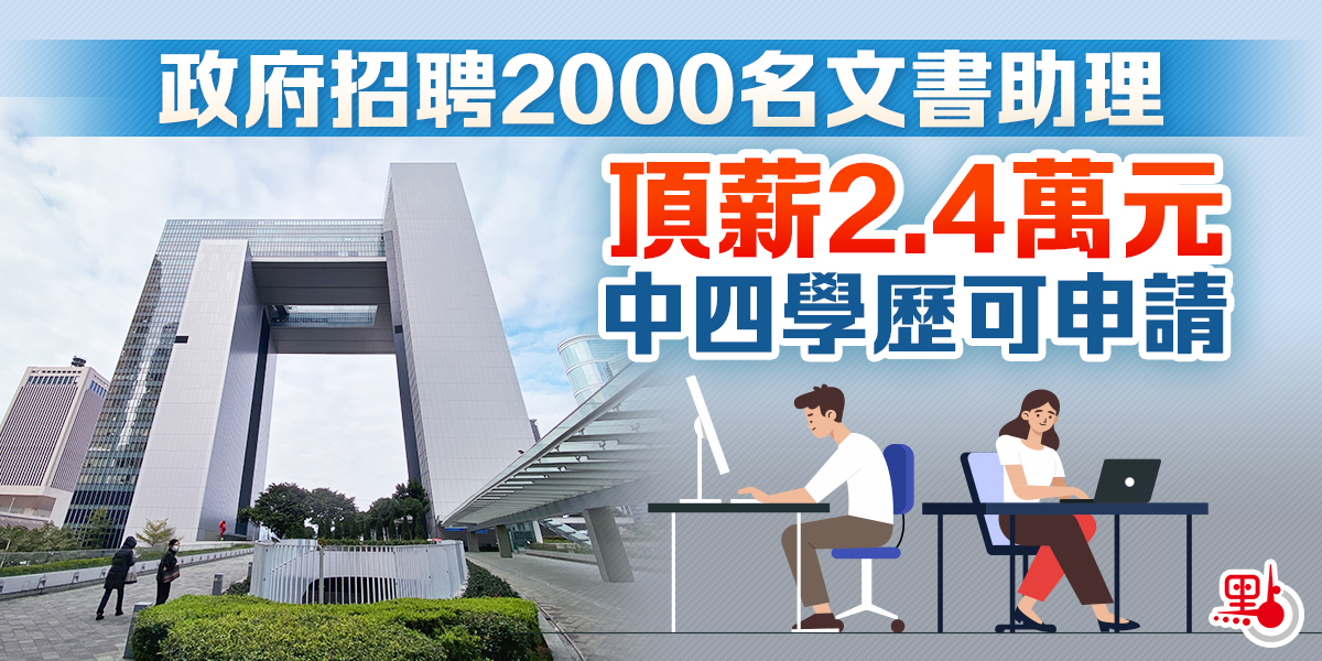公務員事務局今日(12日)展開兩年一度的文書助理公開招聘,在兩年內按公務員條款招聘約2000名文書助理(CA),薪酬為公務員總薪級表第1點(每月14,080元)至總薪級表第10點(每月24,670元)。所有符合入職條件,包括取得所需學歷資格的香港特別行政區永久性居民均可投考,申請人可透過公務員事務局網站遞交申請,截止申請日期為8月25日。