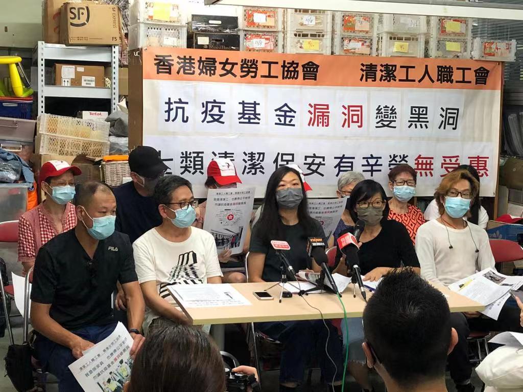 政府早前透過第六輪防疫抗疫基金向前線清潔工及保安員提供合共1萬元津貼,惟有工會今日(14日)表示,仍有七類外判清潔工及保安員未納入計劃,促政府跟進。