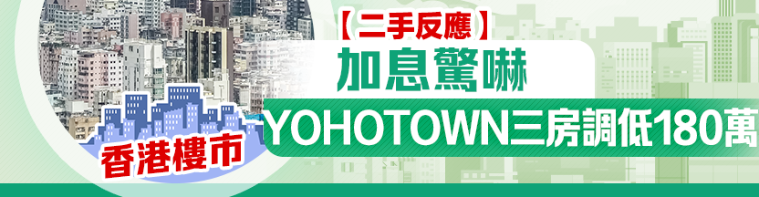 龍頭銀行上調H按封頂息率,本港不同地區二手住宅市場反應不一,個別地區有多個業主得知消息後主動降價。元朗區指標屋苑YOHO TOWN,有3房戶業主得悉H按封頂息率上調後隨即降價,叫價由1,280萬元減至1,100萬元,減幅高達14%。