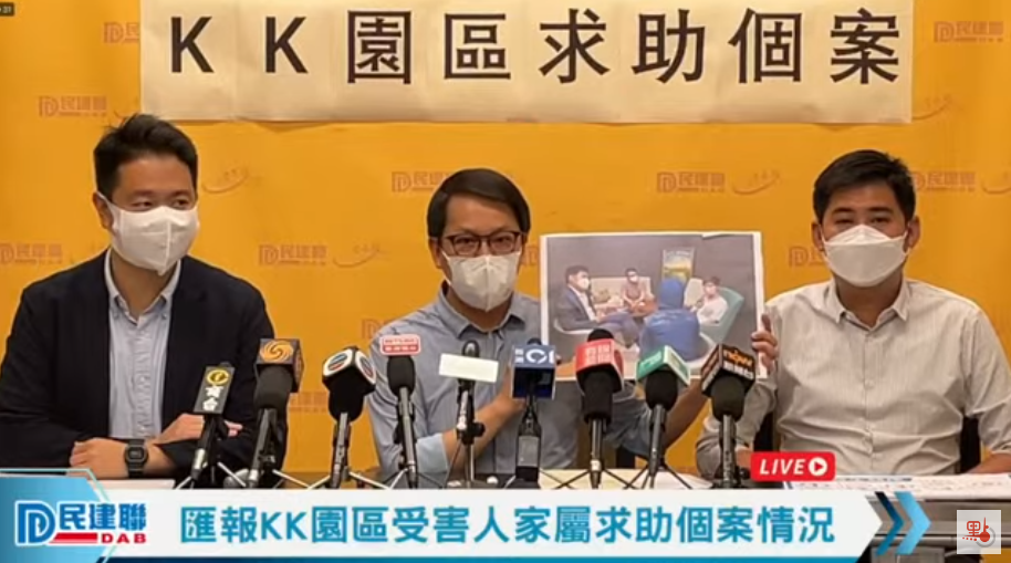 民建聯今日(21日)就立法會議員陳克勤和周浩鼎日前接獲的KK園區受害人家屬求助舉行記者會。民建聯方面表示,受害人家屬已經向警方報案,而受害人目前仍在園區懷疑被禁錮,由於擔心記者會透露太多內容影響受害人人身安全,民建聯方面只能將受騙過程、家屬及受害人的對話進行描述。