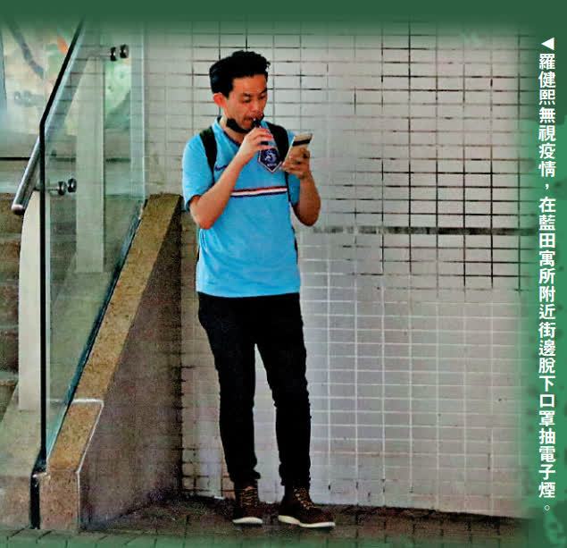 該名民主黨黨員提供的相關相片及影片顯示,7月中一個周日下午,身穿深藍色T恤及黑色牛仔褲的羅健熙,無視疫情在藍田寓所附近一個角落脫下口罩抽電子煙。同日下午約3時,羅到達尖沙咀加連威老道一間精品酒店,上址房價約為700元,到達後他即急不及待上房,原來女友早在房內等候。約兩小時後,羅與束長髮、戴眼鏡的女友雙雙步出酒店,二人如沐春風,十指緊扣地步行至漆咸道南專線小巴站,羅目送女友乘坐前往何文田的小巴後,便獨自返回酒店。至傍晚約7時其女友再次折返酒店,二人在酒店內共渡一宵。