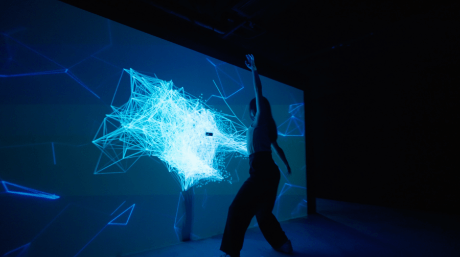 第一站,打卡位藝術科技區「量子宇宙」,市民可以透過互動式的視像投影大展身姿,場內感應器會捕捉並記錄動作,生成又型又夢幻的藝術動態圖,隨意拍上一張照都有十足美感以及神秘感,打卡位認證!