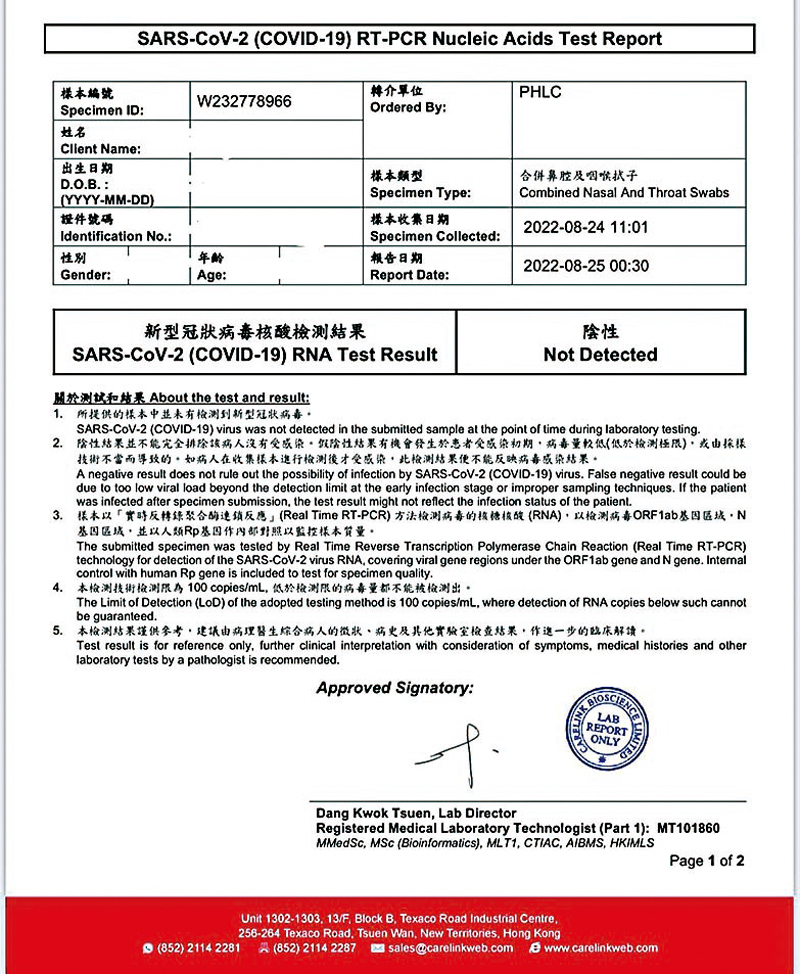 「我3月份確診過新冠,已康復幾個月,24日在香港出咗24小時內有效的核酸陰性報告,點解又話我陽性?」吳同學十分詫異,但關口檢測職員說已為她樣本化驗3次,CT值分別是37、39、39,未能達到澳門及內地40的標準,因此被界定是陽性。