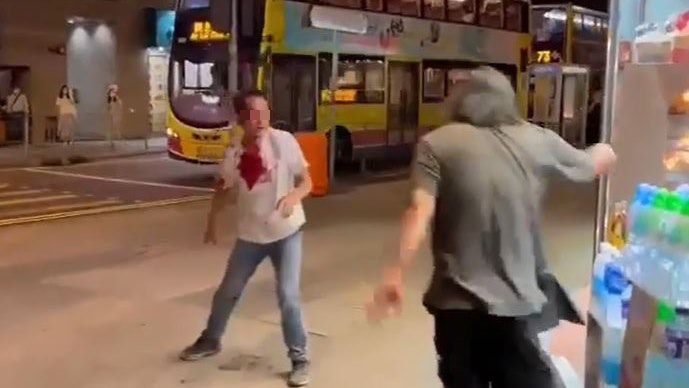 上周六(27日)晚9時許,2名男子於田灣石排灣道的一間連鎖便利店外「激戰」連場、拳來腳往,其中1人更血染白衣,戰況異常劇烈。警方指,2人因戴口罩問題在街頭爭執互毆,其中姓周(58歲)男子頭及手部受傷,與姓蕭(53歲)男子同涉「在公眾地方打架」被捕,案件交由西區警區刑事調查隊跟進。
