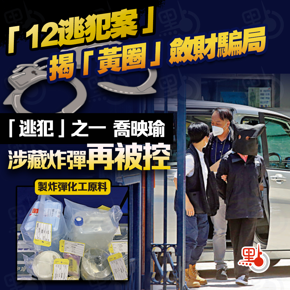 「12逃犯案」其中一名被告喬映瑜,上月22日在內地刑滿出獄。因她是2020年上水村屋製造炸彈案的通緝犯,當日遣送回港,即被香港警方以「藏有危險藥物」及一項「妨礙司法公正」拘捕,案件日前已在粉嶺裁判法院提訊。
