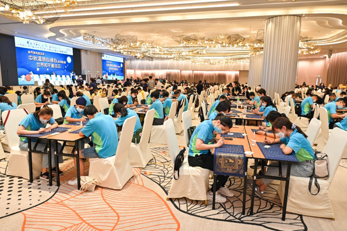 適逢慶祝香港回歸祖國25周年及中秋節,基金會前日(3日)舉行「中秋溫懲心連心(荃灣區)暨世界和平書法日」活動。由懲教署安排年輕在囚人士及其家人通過線上,與會場超過400位同學及參與者一同用毛筆書寫《心經》及燈籠書法祝福語,創造可持續發展SDG世界紀錄。