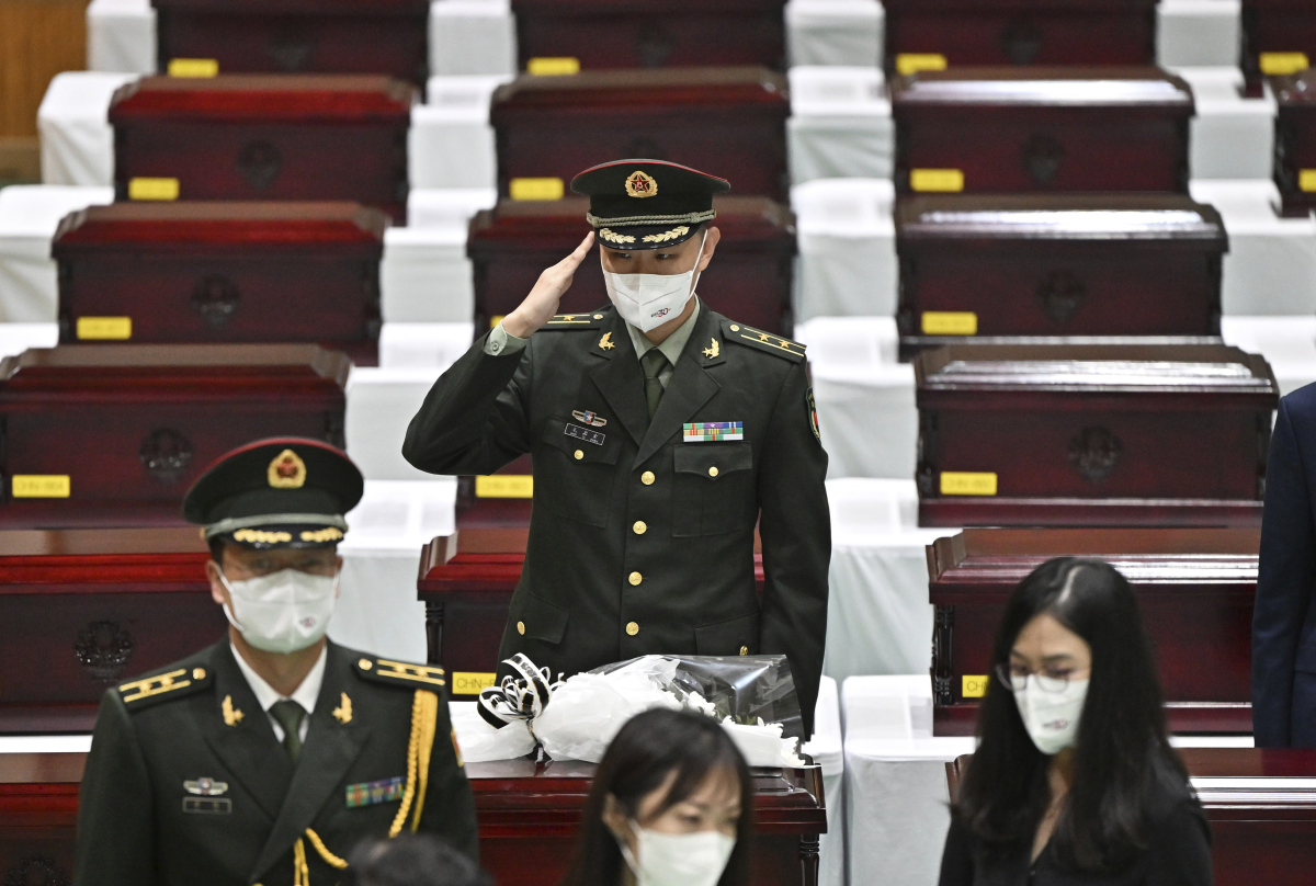 第九批中國人民志願軍烈士遺骸裝殮儀式今日(15日)在韓國仁川舉行。
