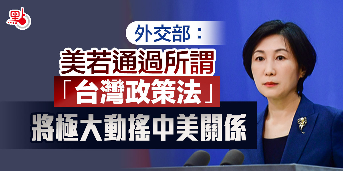 毛寧強調,我們強烈敦促美方恪守一個中國原則和中美三個聯合公報,切實將美國領導人作出的不支持「台獨」承諾落到實處,停止打「台灣牌」搞「以台制華」,停止推進審議有關法案。中方將視該案進展情況和最終結果,採取一切必要措施,堅決捍衛國家主權和領土完整。
