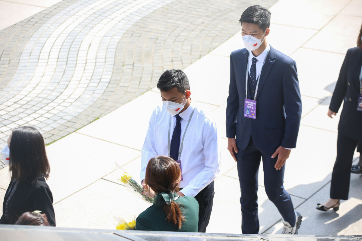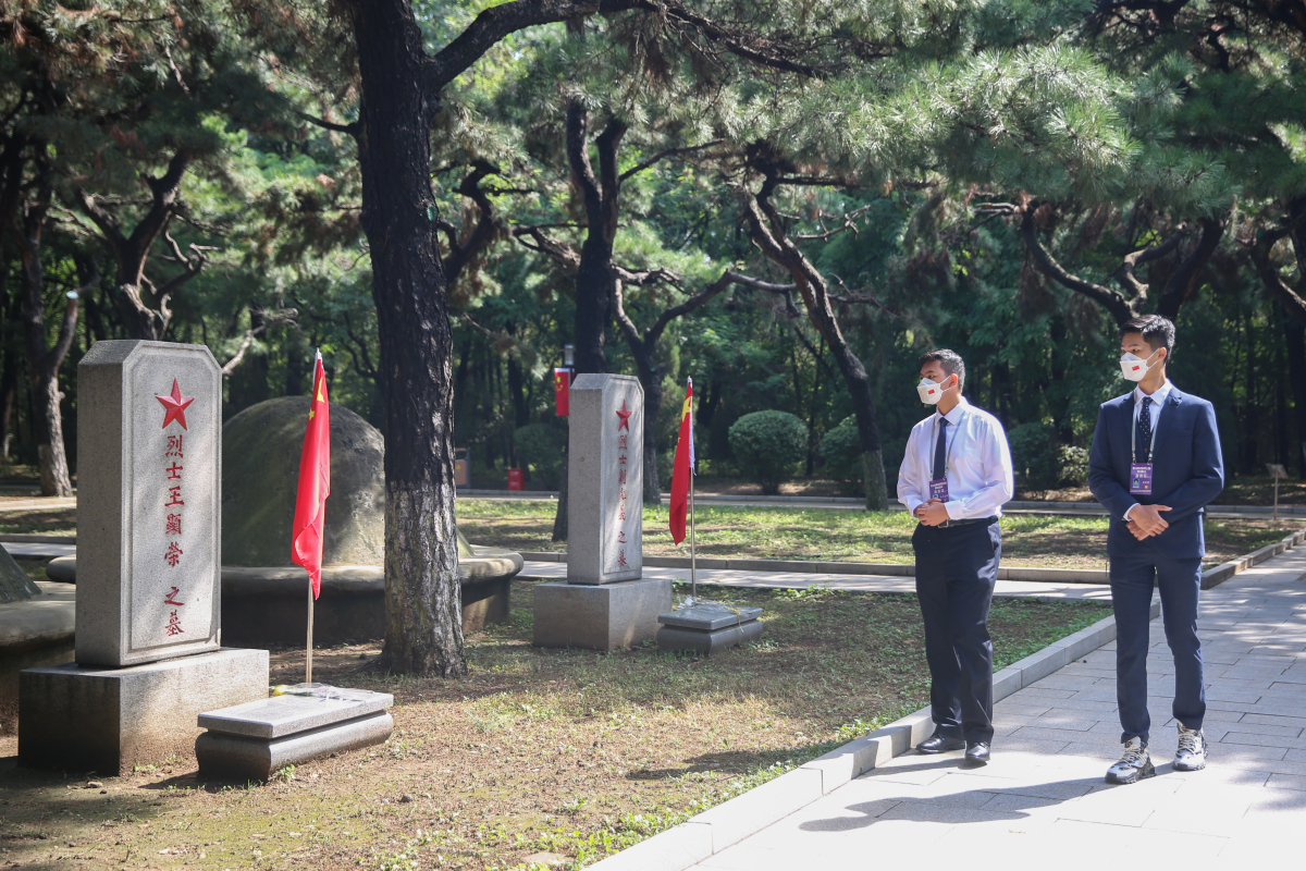 在參加完安葬儀式後,香港學生代表16歲的香港培僑中學高一生曲木之懿和培僑校友代表姜霏梵自發前往烈士陵園中的烈士墓碑前,代表港生向烈士祭拜並敬獻鮮花。他們默默在烈士墓前佇足、鞠躬,緩緩走向烈士墓碑敬獻代表哀思的黃色菊花。「看着一個個烈士的墓碑,我們想到他們曾經也是像我們一樣年輕,當年背負着歷史使命奔赴前線為國作戰,這種精神和意志是我們的精神指引,一定會代代相傳、生生不息。」