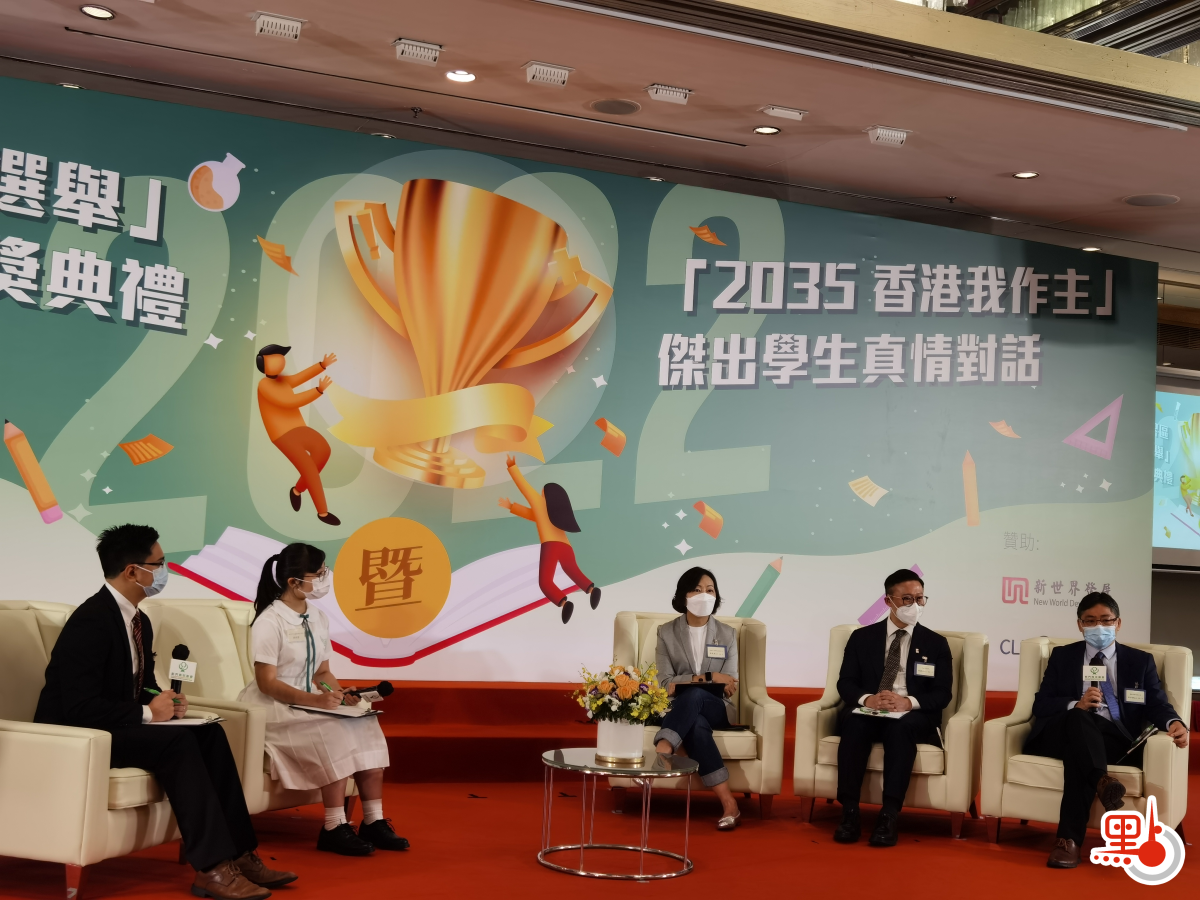 在今天的傑出學生真情對話環節,民政及青年事務局局長麥美娟「自爆」,自己早年曾任葵青區青年大使,今日的活動喚醒了她對當年參賽經歷的回憶。她坦言,現在的學生目標清晰,人生中的機遇是無法預知的,年輕人要做的就是裝備自己、做好準備,待機遇到來時就抓緊。她相信,參加「新界區傑出學生選舉」會是學生人生中的一段難忘經歷,呼籲大家緊抓機遇並珍惜一同參賽的同學。麥美娟又以自身經歷坦言,態度是決定成功與否的關鍵,最重要是對人生有正面態度。民政及青年事務局將於12月發表《青年發展藍圖》,麥美娟鼓勵同學們廣泛發聲和提出意見。她希望在藍圖中創造更多機會和平台,提升學生們的參與感,並發揮潛能。