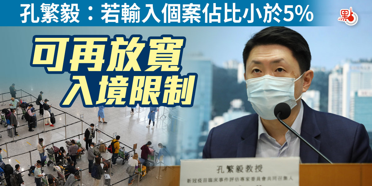 政府專家顧問、港大醫學院內科學系傳染病科主任及臨床教授孔繁毅今日(24日)表示,支持政府將海外及台灣地區來港檢疫改為「0+3」,認為措施有良好科學數據支持,有助於社會經濟活動恢復。他認為,如果輸入個案佔整體個案比例維持在5%下,本港便有條件進一步放寬入境檢疫限制,抵港人士只需於指定日子進行核酸檢測,且無需推行「黃碼」安排。