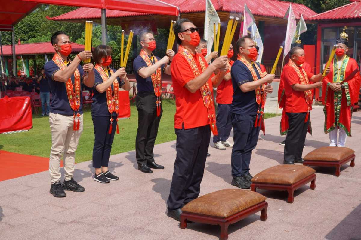 昨日(26日),20多位道教科儀師傅一早布置好位於香港元朗大棠有機生態園的關帝廣場,帶領約140位警務人員,舉行「香港警察隊員佐級協會45周年-關帝祭祀儀式」。警務處處長蕭澤頤一同參與活動。
