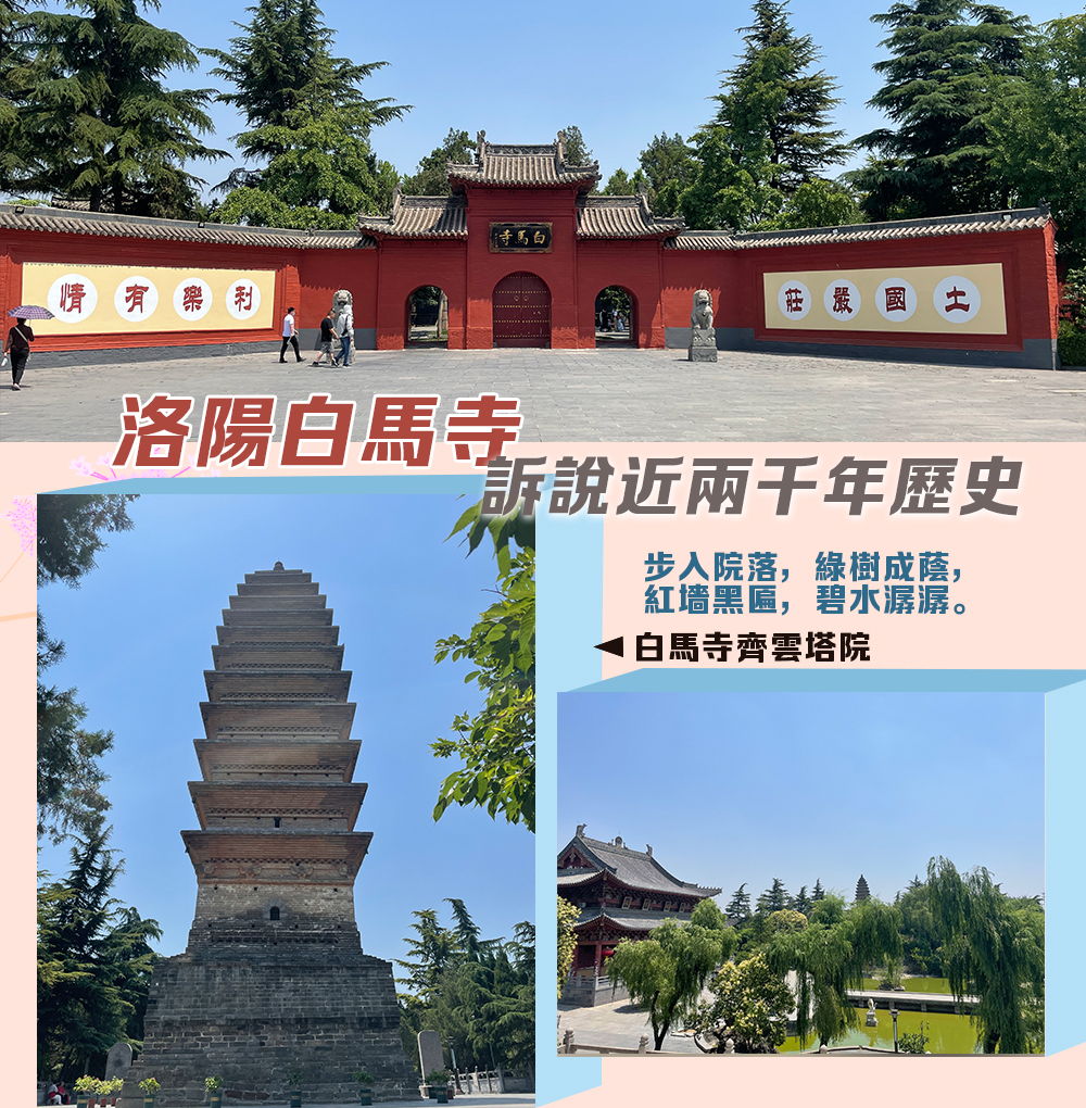 說起佛教傳入中國後興建的第一座寺院,大家都會第一時間想起河南洛陽的白馬寺。這座歷史近兩千年的建築群,已然成為一個地標,使專程抵達此地或途徑的人們忍不住要進去觀摩一番。深紅色的山門——三洞弧牌樓式券門,以及單檐歇山頂,將人一下子帶入遼闊的歷史畫卷之外,亦訴說着中華傳統建築的精美和恢弘。