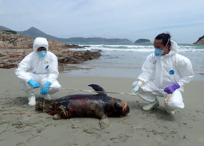 香港海洋公園保育基金指,擱淺地點在西灣沙灘,屬成年江豚,身長約120厘米,性別有待確定,屍體已達第4級「嚴重腐爛」程度,身體後端有明顯切割傷口。保育基金昨日在現場解剖,並將江豚樣本帶回海洋公園作詳細分析。