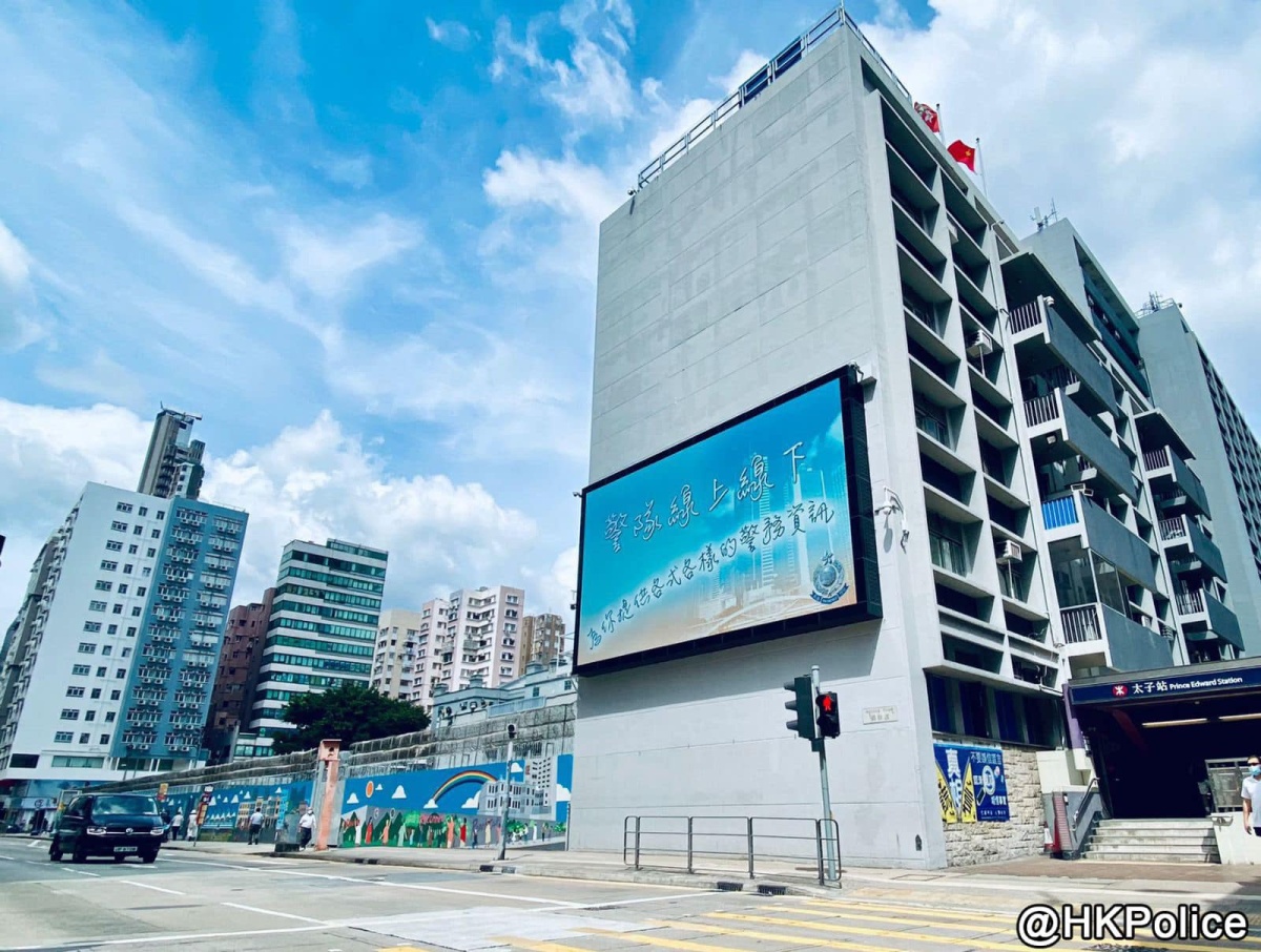 警隊首個大型戶外電子屏幕,今日(29日)正式開播。該電子屏幕設在旺角警署外牆,背靠警署,對正彌敦道及太子地鐵站出口,十分顯眼,佔盡地利。警方表示,會365日全天候播放警務資訊。