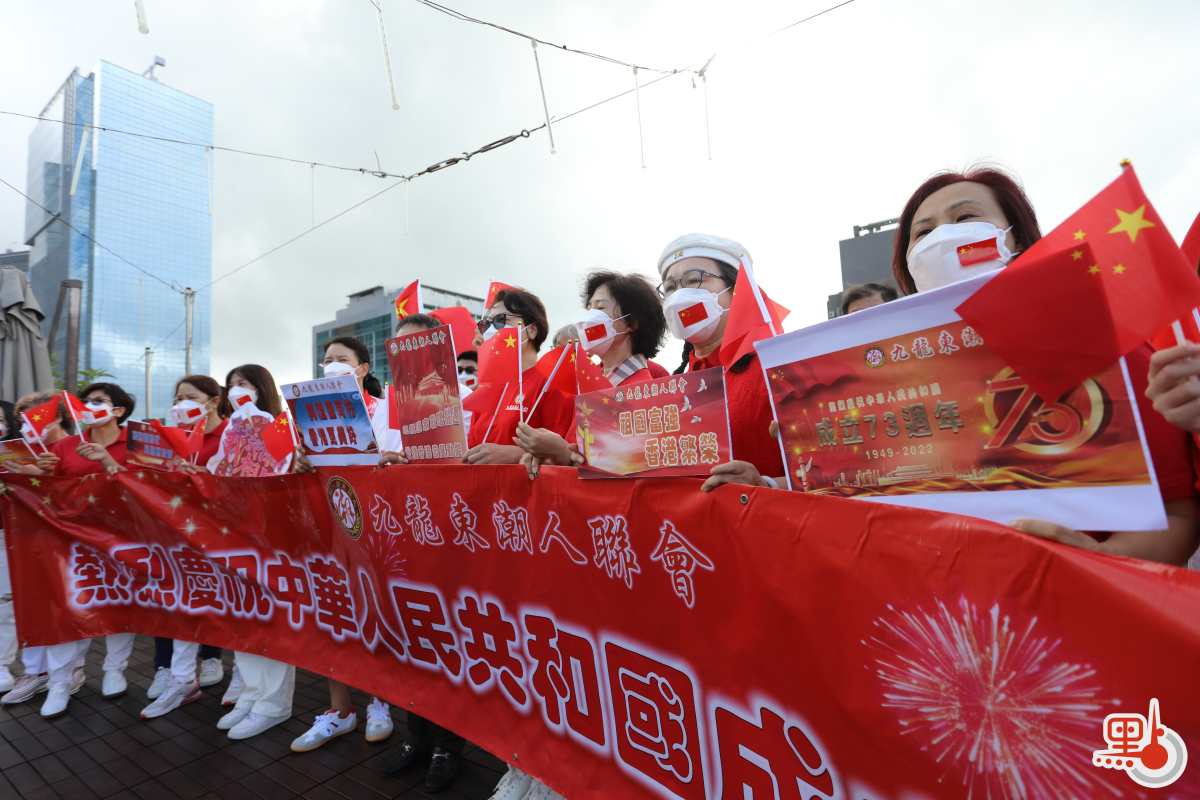 九龍東潮人聯會今日(10月1日)在觀塘舉行「迎國慶歌唱祖國快閃活動」,組織逾200位會員,現場演唱愛國歌曲,包括《歌唱祖國》、《東方之珠》、《紅旗飄飄》、《五星紅旗》、《我和我的祖國》等。