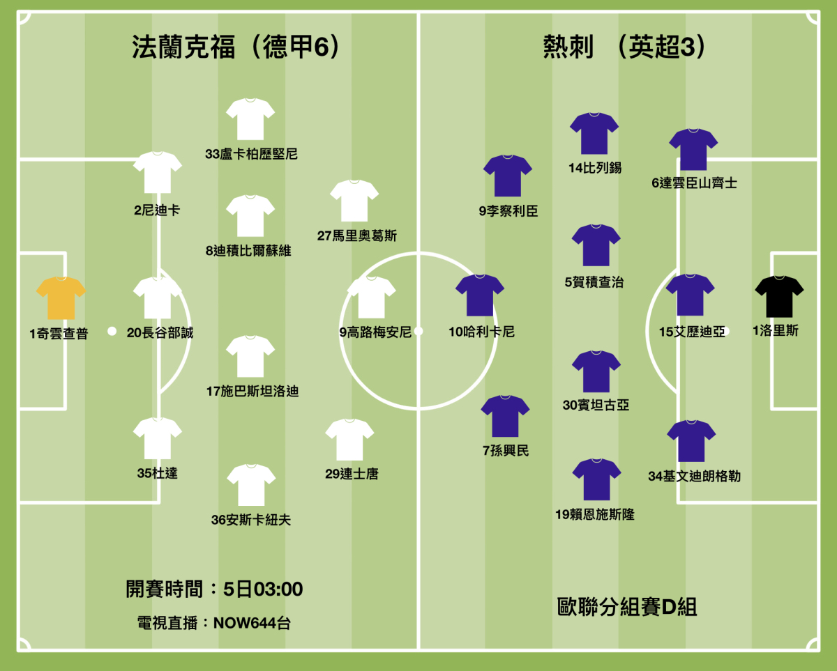熱刺欲在北倫敦打吡戰1:3客負阿仙奴的失意中重振,卻在歐聯比賽遇上最近3連捷的德甲隊伍法蘭克福,兩軍交鋒各有千秋,今仗戰局預計會相當耐人尋味。(香港時間周三凌晨3時開賽,NOW645台直播)