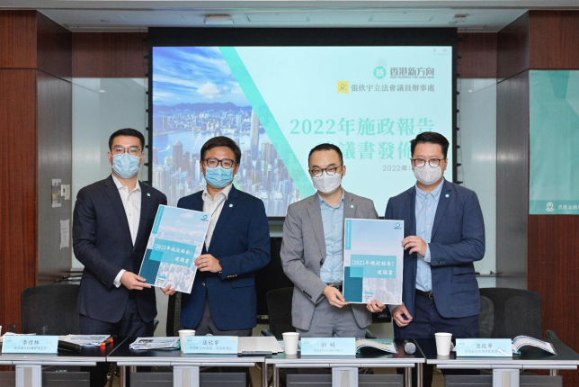 香港新方向及立法會議員張欣宇早前向特區政府提交2022年施政報告建議書,重點提出七大範疇的建議,覆蓋北部都會區及城市發展、房屋、環保、創科、人才、管治等多個領域。香港新方向認為,現屆特區政府的首份施政報告應聚焦規劃未來發展方向,為未來5至10年、以至更長遠的香港整體發展確立目標;同時受到過去數年「修例風波」和新冠疫情對本港的雙重打擊下,亦需主力着墨於提升香港發展動能的措施,重振社會士氣。