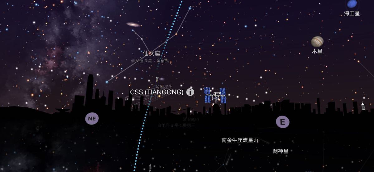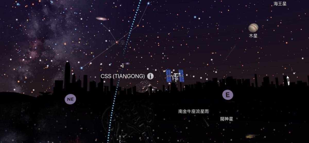 未來數日,香港地區均能觀測到中國空間站(天宮)過境,今日(5日)傍晚為近段時間來觀測拍攝的最佳時機。18時50分左右,中國空間站(天宮)快速掠過香港上空。此時,空間站亮度達-1.2等,與夜空中最亮的恆星天狼星亮度相差無幾。點新聞讀者拍片分享,指僅憑肉眼也能輕鬆觀測。