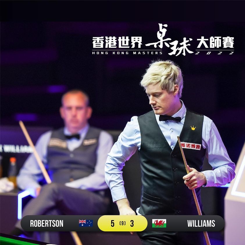 賽會昨晚(6日)公布,世界排名第六的中國新星趙心童因確診新冠肺炎缺席比賽,「黃金左手」威廉斯頂上。今早才落機的威廉斯,首局已打出133度。綽號「墨爾本機器」的羅拔臣到第二局打出一桿105度,扳成平手,之後雙方各贏一局,半場打成2比2。第二節比賽開始後,羅拔臣再連取兩局,領先至局數4比2,他在第五局打出今屆賽事暫時最高的一桿140度。威廉斯不斷嘗試扭轉劣勢,到第七局贏80比0,追至落後局數3比4。不過羅拔臣在第八局再大比分反勝,鎖定四強席位。