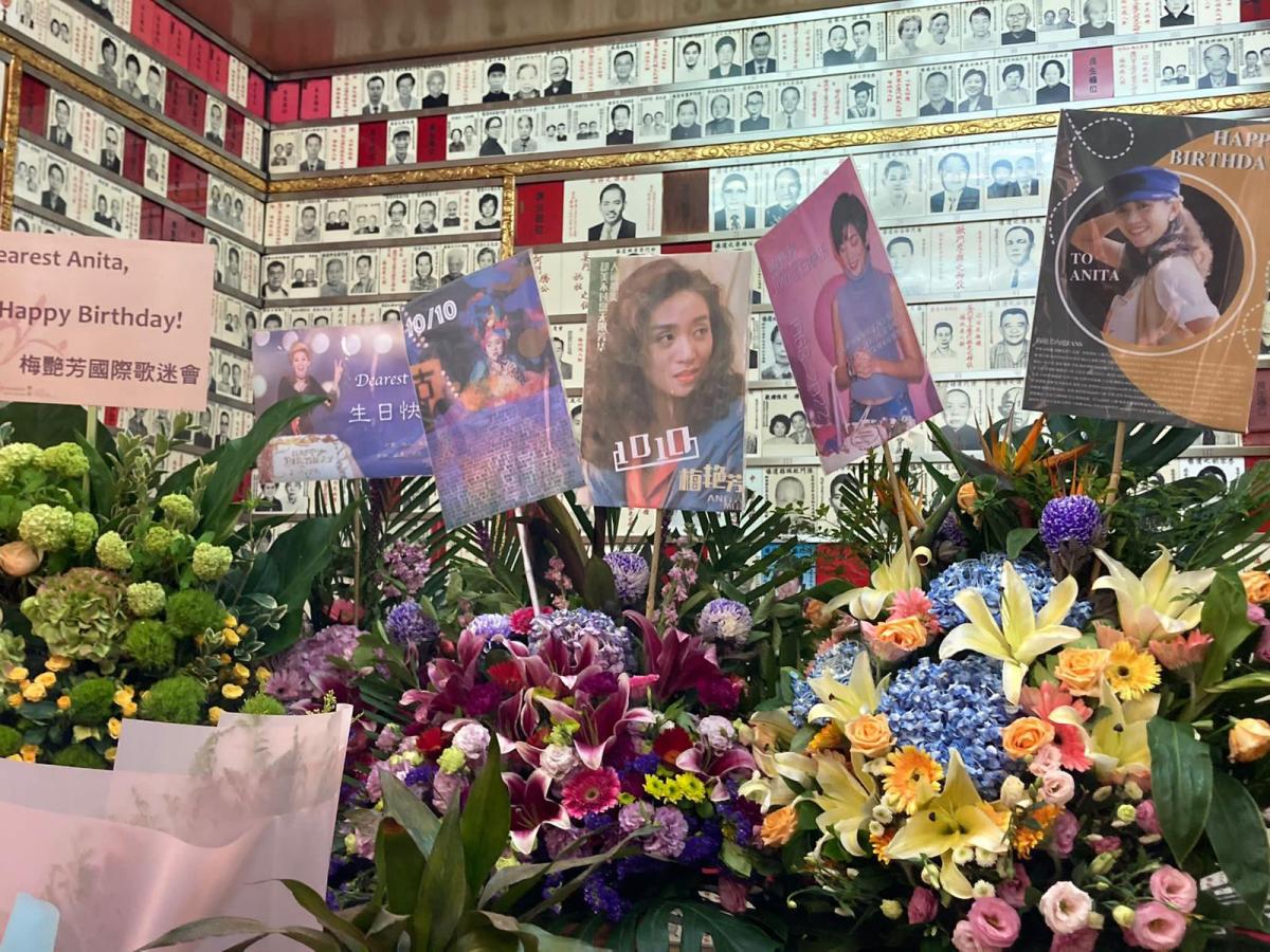 今天(10日)是一代歌后梅艷芳(梅姐)的59歲忌辰。「梅艷芳國際歌迷會」及「芳心薈」的fans特別請假,分別到大嶼山海薈塔、省善真堂、銅像、蠟像館拜祭,已離開19年的梅姐獲fans送來的花多到如花海般。Fans帶來梅姐生前最愛食物,熱熱鬧鬧和梅姐共度冥壽。