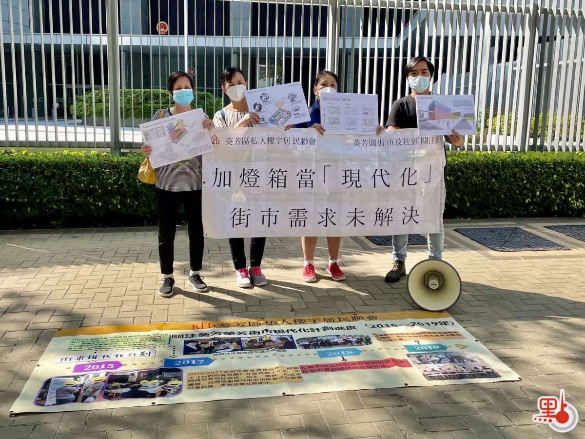 葵芳區私人樓宇居民聯會自2016年開始一直關注葵芳的榮芳街街市改革問題以回應社區需要。立法會食物安全及環境安全事務委員會於今日(11日)下午舉行會議商討推展街市現代化計劃,文件內榮芳街街市仍被忽略。有見及此,葵芳區私人樓宇居民聯會聯合葵芳圍街市及社區關注組於會議前進行請願,表達對榮芳街街市問題反映多年仍無進展的不滿及重申由居民、規劃師及建築師等共議的具體方案。