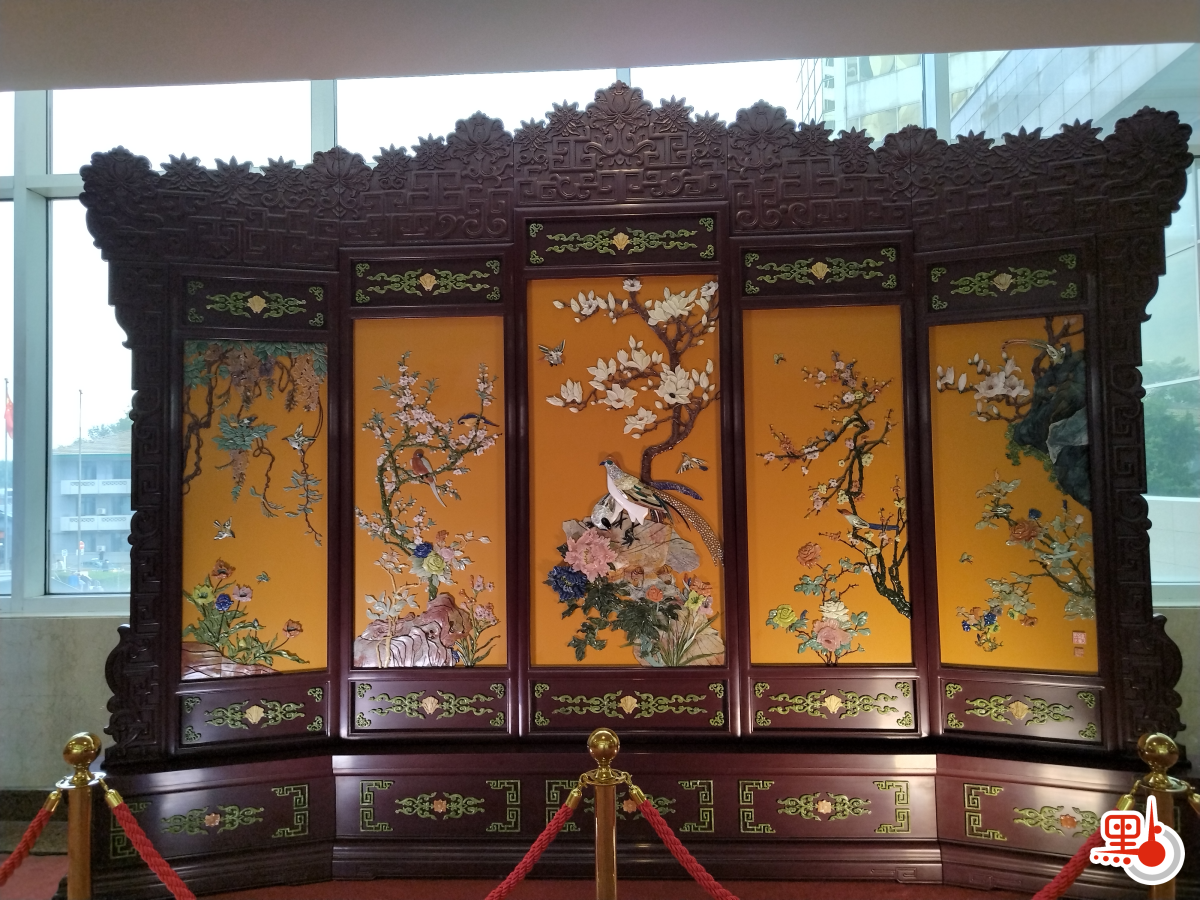 點新聞記者在新聞中心看到,中國紅主色調喜慶隆重,在記者工作區門口通道專設了燕京八絕、京劇戲服等非遺展示,吸引不少外國記者駐足拍攝。