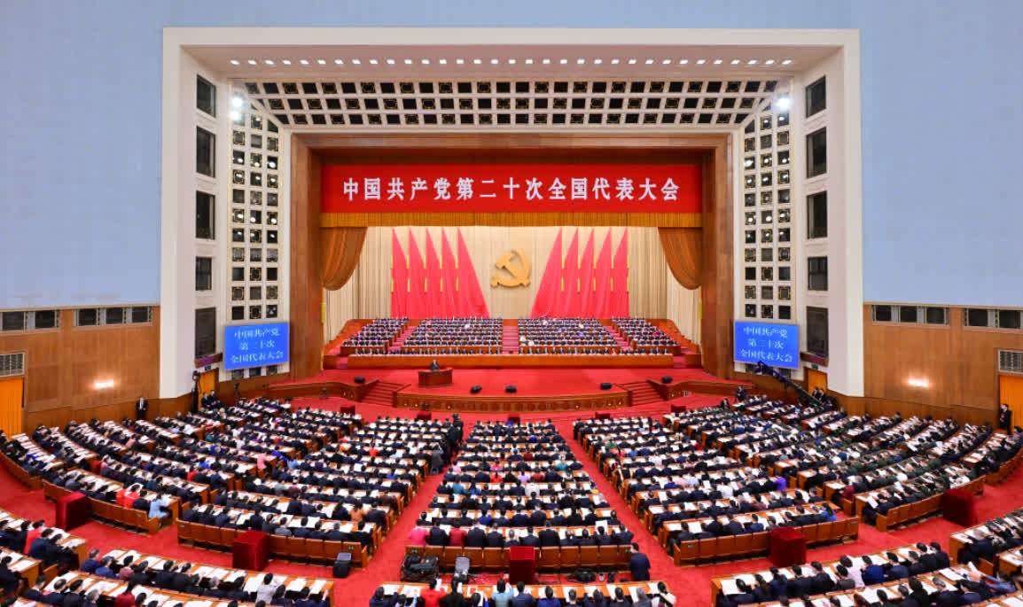 中國共產黨第二十次全國代表大會於10月16日在北京人民大會堂開幕。記者從開幕會直播畫面看到,人民大會堂大禮堂二樓掛着巨大的鮮紅色橫幅,上寫「高舉中國特色社會主義偉大旗幟,全面貫徹習近平新時代中國特色社會主義思想,弘揚偉大建黨精神,為全面建設社會主義現代化國家、全面推進中華民族偉大復興而團結奮鬥」,大禮堂三樓橫幅則寫着「偉大、光榮、正確的中國共產黨萬歲!」從大會堂懸掛的橫幅內容,折射着近年來黨代會主題的變遷。