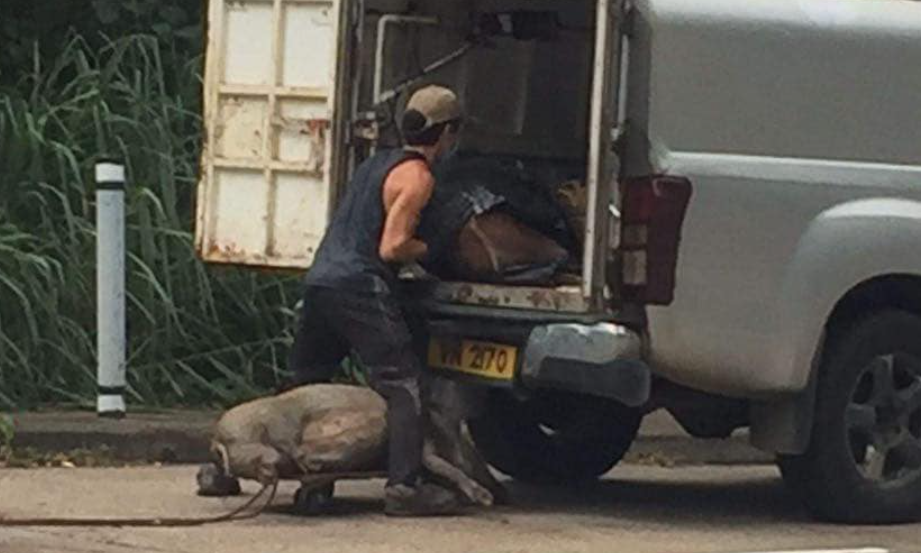 根據圖片可見,一名男子將多隻野豬屍體運上一架貨車,該男子一人行動,未見有穿漁護或其他外判商制服,似是私下獵殺。漁護署則指,署方今日並無在查詢所指地點進行野豬捕捉行動。