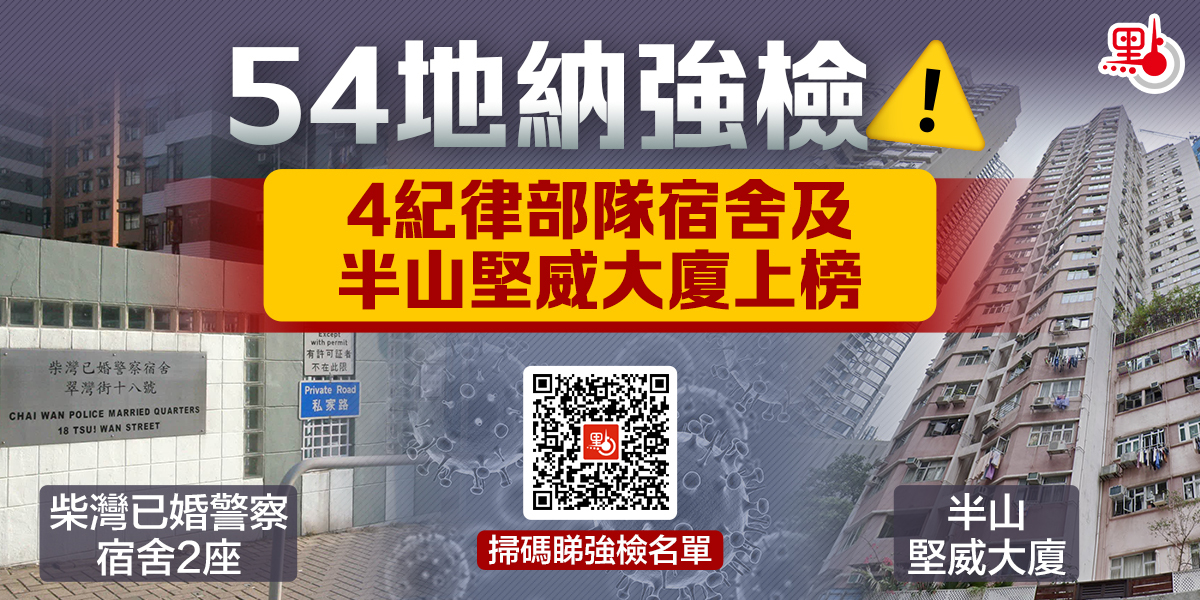 本港第五波疫情持續,今日(21日)新增5393宗確診個案,當中包括5023宗本地確診個案及370宗輸入個案。政府今日發出強制檢測公告,要求於指定期間曾身處54個指明地方的人士,須在10月22日或10月23日接受核酸檢測。