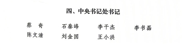 蔡奇 石泰峰 李干傑 李書磊 陳文清 劉金國 王小洪