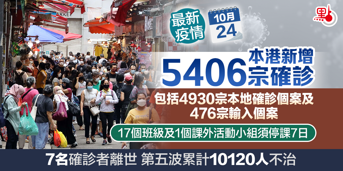 本港第五波疫情持續,衞生署衞生防護中心公布,截至今日(24日)零時,本港過去一日新增5406宗確診個案,當中包括4930宗本地確診個案及476宗輸入個案。本地確診個案中,核酸檢測陽性個案有1297宗,快測陽性個案3633宗。