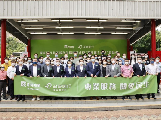 華潤物業有限公司近日於香港何文田愛民村舉行「潤愛同行」社區服務站揭牌儀式暨「潤愛護老計劃」啟動禮。華潤集團副總經理王春城、香港民政及青年事務局副局長梁宏正、中聯辦九龍工作部副部長李文彬、香港立法會議員民建聯主席李慧琼、香港立法會議員經民聯主席盧偉國、香港中國企業協會副總裁曾燊典、華潤物業董事總經理張偉、香港立法會議員李浩然、九龍城區議會主席何顯明、華潤集團職工聯誼會副會長劉宜朋以及公司部分其他管理團隊成員、在港下屬物管負責人、義工代表等100餘人參加本次儀式。
