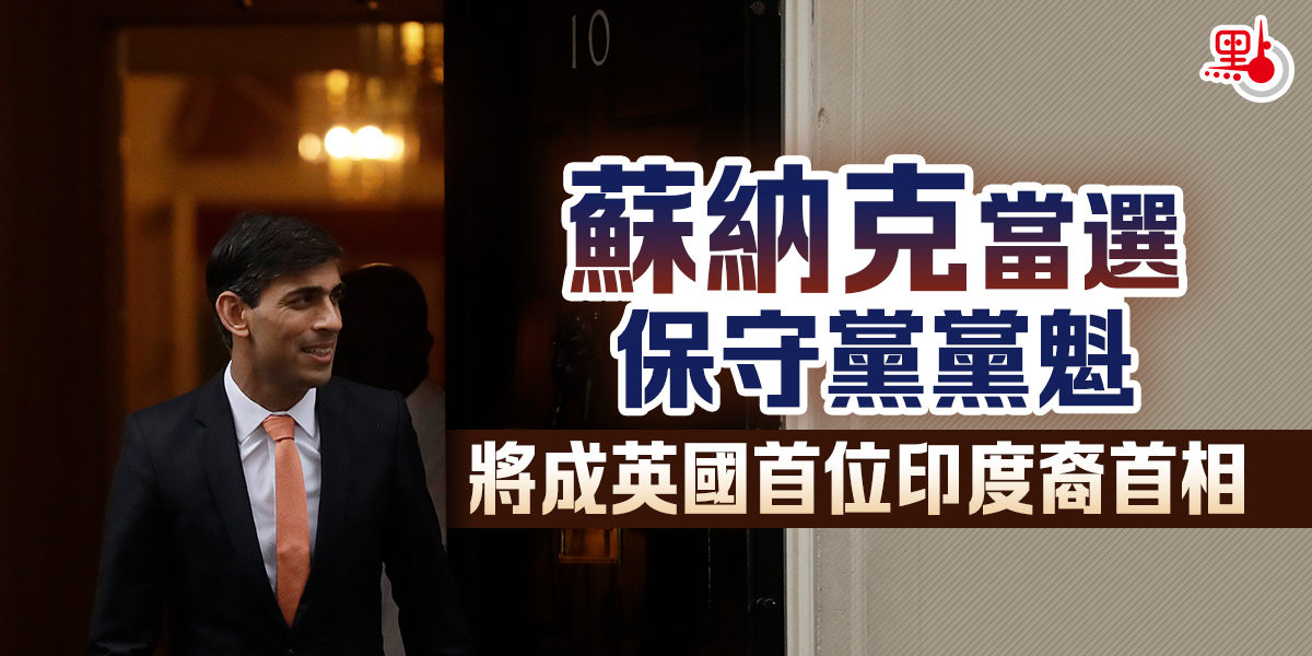 英國執政保守黨黨魁選舉提名期於當地時間今日(24日)下午2時結束,蘇納克獲得唯一提名,自動當選保守黨新黨魁,他也將成為英國首位印度裔首相。