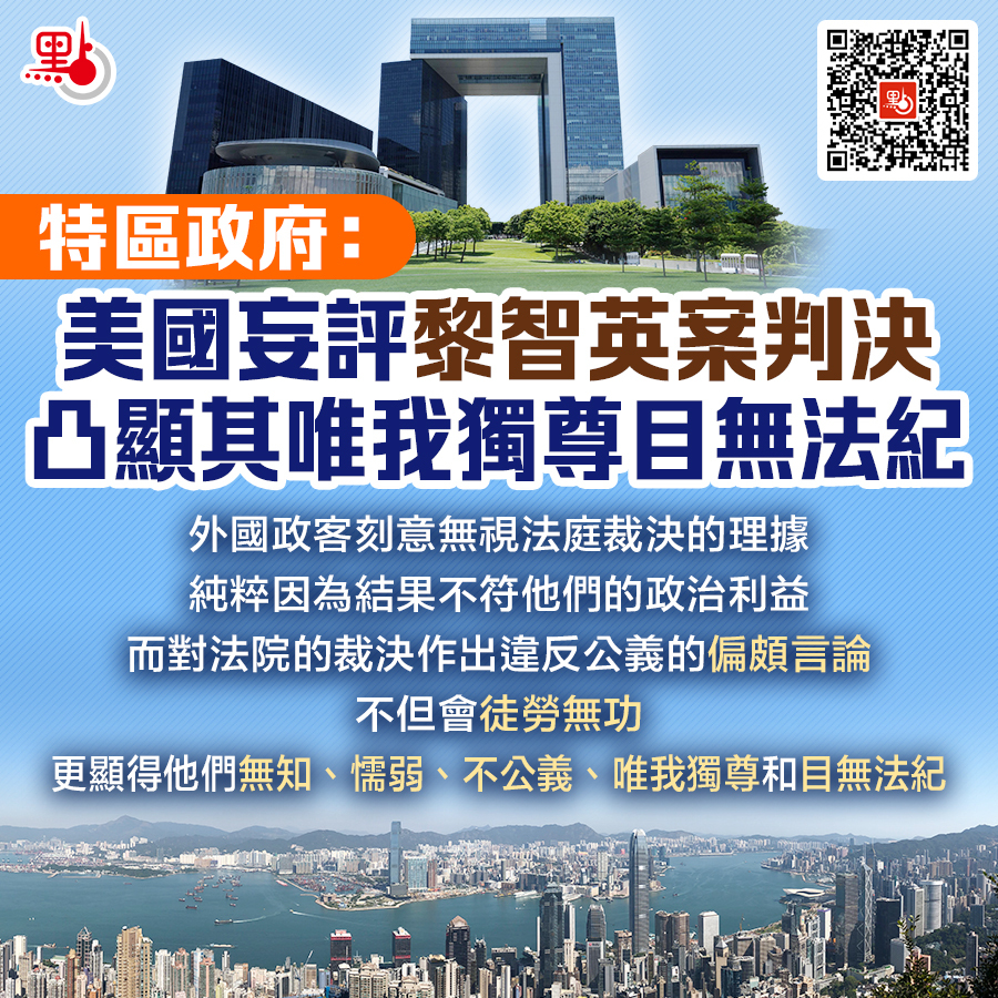 香港特區政府今日(27日)表示,強烈反對美國政府就香港特區法院依法就黎智英欺詐案的判決作出背離事實的批評,及對香港國安法的不實指控和污衊抹黑,強烈促請美方立即停止干預香港特區的內部事務。
