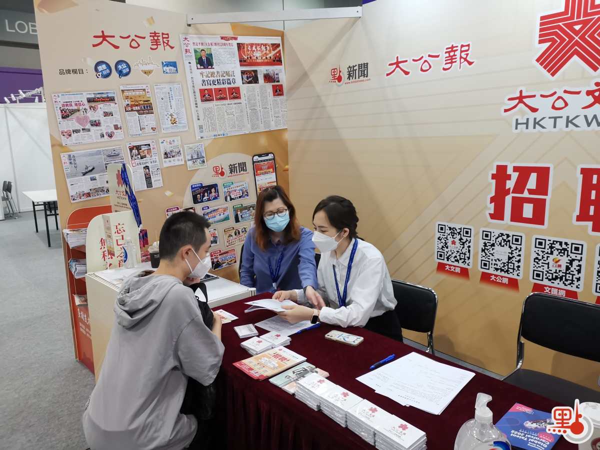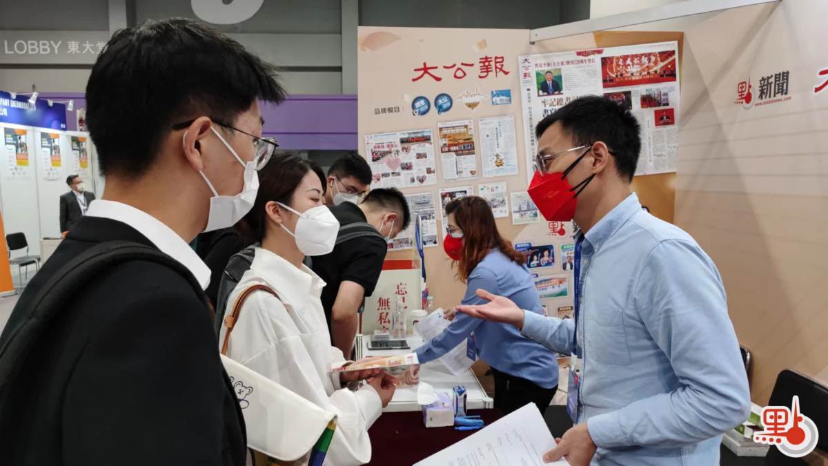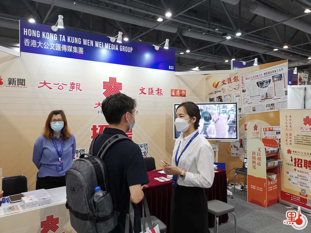 「創新香港─國際人才嘉年華 2022」於今日(29日)及30日一連兩日在香港亞洲國際博覽館5號展館舉行。香港大公文匯傳媒集團入駐展會(攤位B33),提供採編、行政等大量全職、優質崗位,更特邀文匯報總編輯吳明、大公報總編輯于世俊和香港仔總編輯林映等資深傳媒人親自到場為應聘者答疑解惑。現場求職者絡繹不絕,招聘負責人與應聘者進行面對面交流,有應聘者即時遞交履歷表,現場氣氛熱烈。
