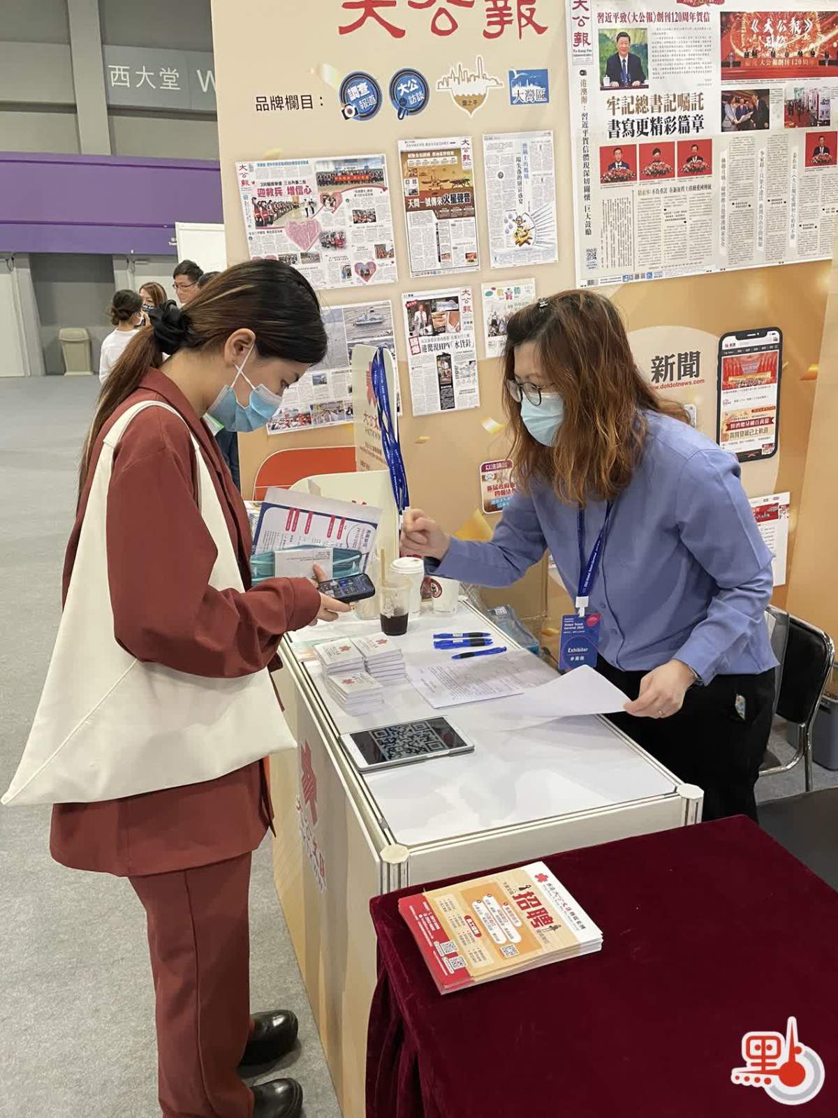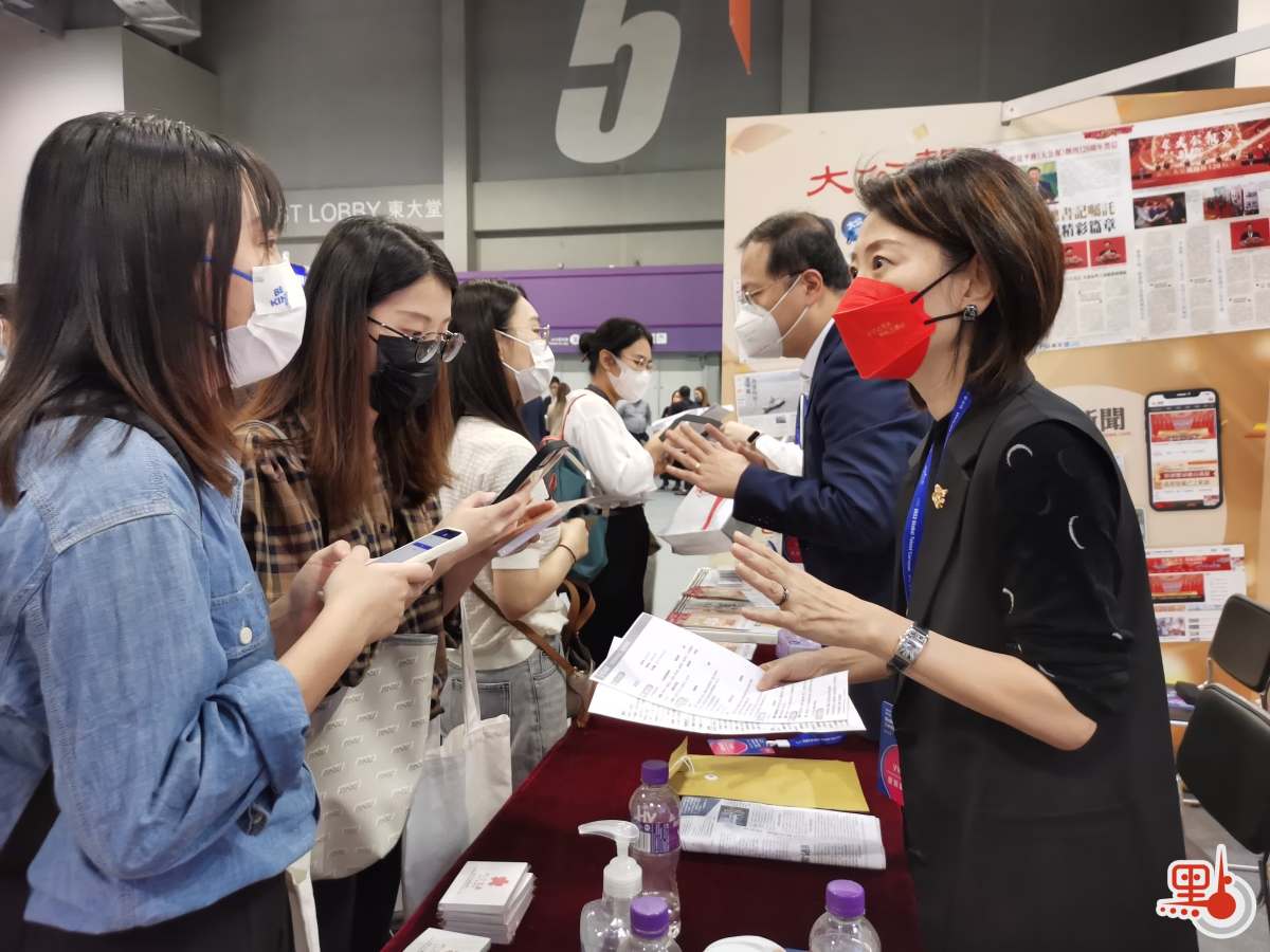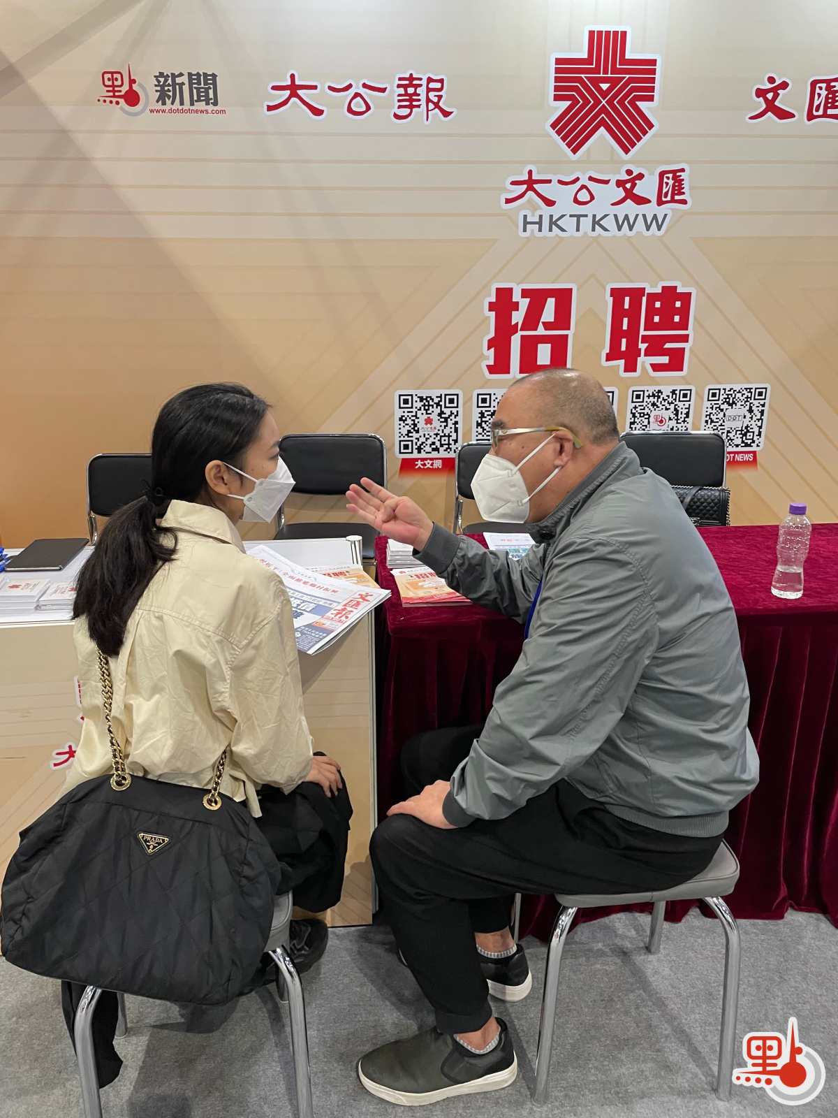 「創新香港─國際人才嘉年華 2022」於今日(29日)及30日一連兩日在香港亞洲國際博覽館5號展館舉行。香港大公文匯傳媒集團入駐展會(攤位B33),提供採編、行政等大量全職、優質崗位,更特邀文匯報總編輯吳明、大公報總編輯于世俊和香港仔總編輯林映等資深傳媒人親自到場為應聘者答疑解惑。現場求職者絡繹不絕,招聘負責人與應聘者進行面對面交流,有應聘者即時遞交履歷表,現場氣氛熱烈。