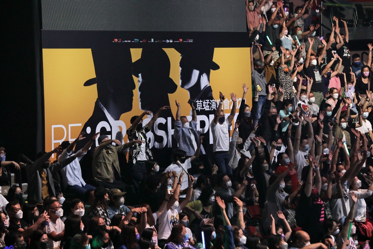 其後草蜢在台上感謝整個演唱會幕後團隊付出期間,蔡一智有感而發說:「我哋仲要多謝一個人,就係我哋嘅師傅,梅艷芳小姐,我知佢今晚有嚟睇,我哋三個每次開演唱會,都係送俾佢,我哋唔會忘本,一定要做到最好,唔可以失禮我哋師傅。」為了樂迷,為了師傅,三子雖然做足一百分準備,但演唱會來到尾聲,蔡一傑突然感觸哽咽道出開騷前突然失聲的經過,他說:「剛才黃昏六點左右,我失咗聲,然後我入咗醫院,我好驚,好驚唱唔到⋯⋯我一路好緊張,即刻打俾我醫生,我話我開唔到聲,我好驚,跟住我即刻入醫院打針,變返嚟(聲線)見你哋,我一定要唱到為止,我開番聲嘞,多謝醫生,多謝歌迷俾我嘅力量,多謝你哋一直支持草蜢。」此時,傑仔已忍不住流下男兒淚,最後與好拍擋蘇志威、哥哥蔡一智,一起合唱《我們》,為一連四場的《RE:GRASSHOPPER 草蜢演唱會2022》完美落幕。