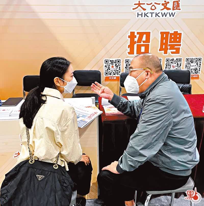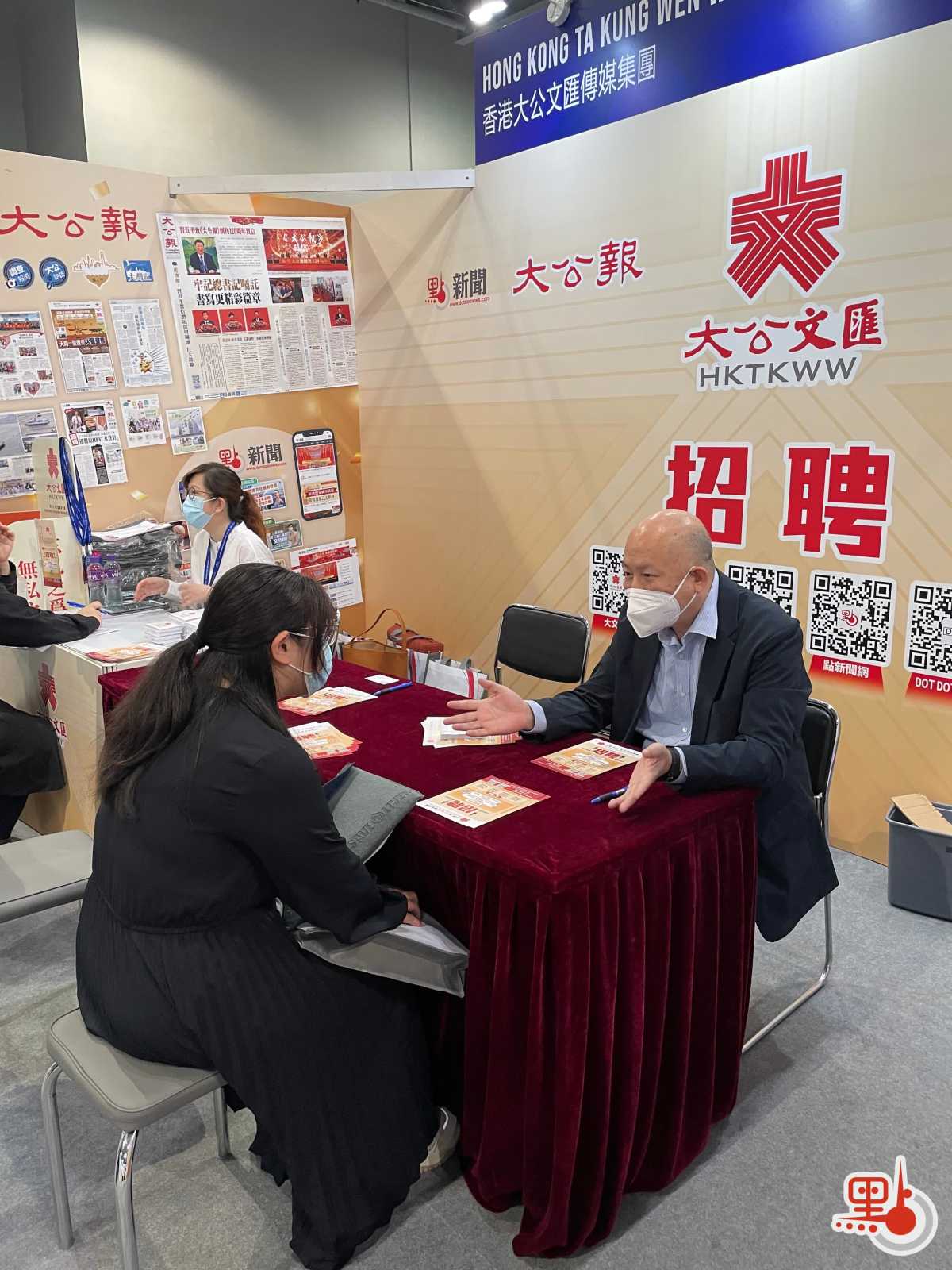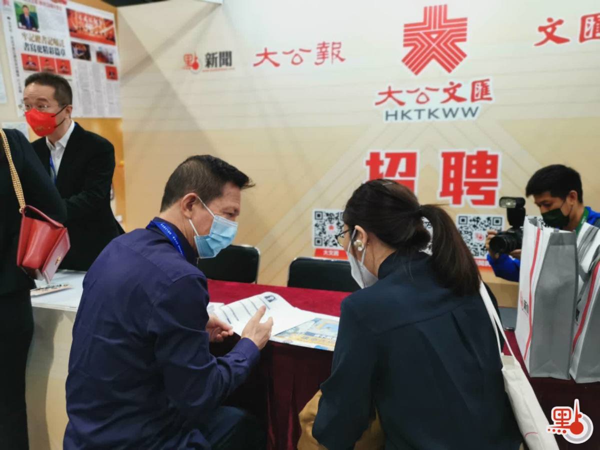 第三屆「創新香港—國際人才嘉年華」昨日起一連兩天在亞洲博覽館舉行,為有志在香港以至整個粵港澳大灣區發展的人才提供優質工作機遇。香港大公文匯傳媒集團亦有入駐展會,在現場設立攤位(B33),提供採編、行政等大量全職、優質崗位。現場氣氛熱烈,求職者絡繹不絕,大公文匯傳媒集團副總編輯吳德祖、大公文匯全媒體新聞中心總編輯黃曉敏、大公報副總編輯趙汝慶今日(30日)親自到場,面對面為求職者答疑解惑。不少有意向應聘人士亦踴躍發問,與資深傳媒人互動交流意見。