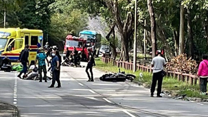 今日(30日)下午1時許,一架電單車沿沙頭角新娘潭路行駛,至降下坳營地準備右轉入停車場時,尾隨的電單車懷疑收掣不及發生相撞,兩名鐵騎士同告受傷,雙雙倒地,事後由救護車送院治理。