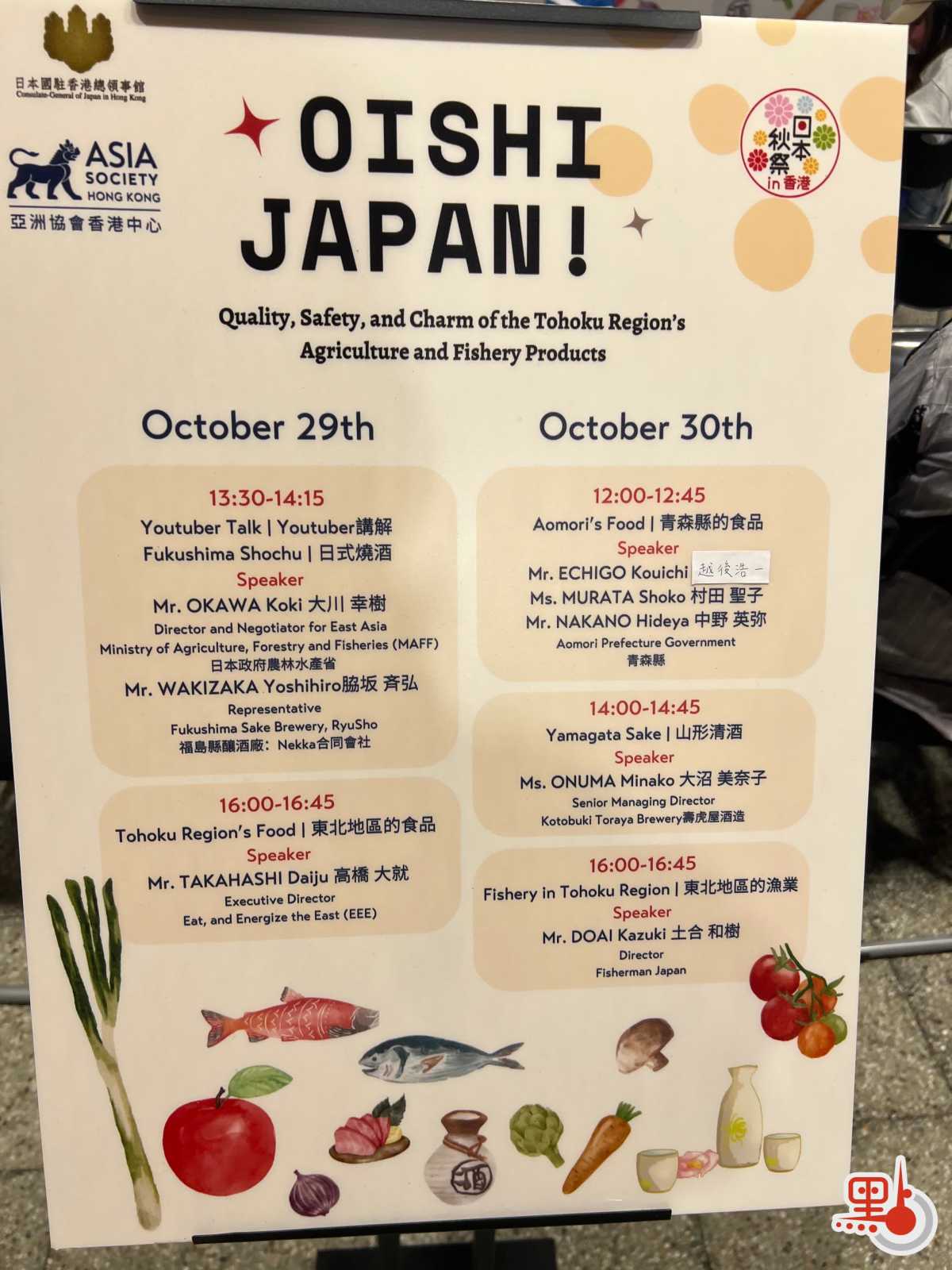 除歌舞表演外,還有由日本總領館與亞洲協會香港中心合辦的「OishiJapan!東北地區日本食品研討會」,亦在會場同步舉行。研討會通過視頻方式連接日本食品生產業界之不同代表,透過5場直播,講解日本東北地區農產、海產食品和日本酒的品質與特色,向觀眾分享各種日本產品的生產過程及獨特魅力。東北地區位於日本本州的東北部,以豐富多樣的農產、海產物聞名。